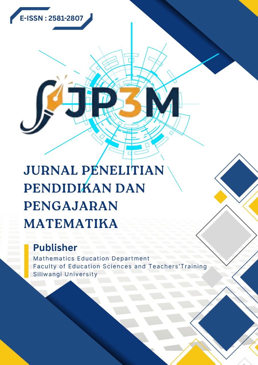 JP3M (Jurnal Penelitian Pendidikan dan Pengajaran Matematika) with E-ISSN : 2581-2807 and P-ISSN : 2460-8599 is the international journal published by Mathematic Education Department FKIP UNSIL Press (Universitas Siliwangi).