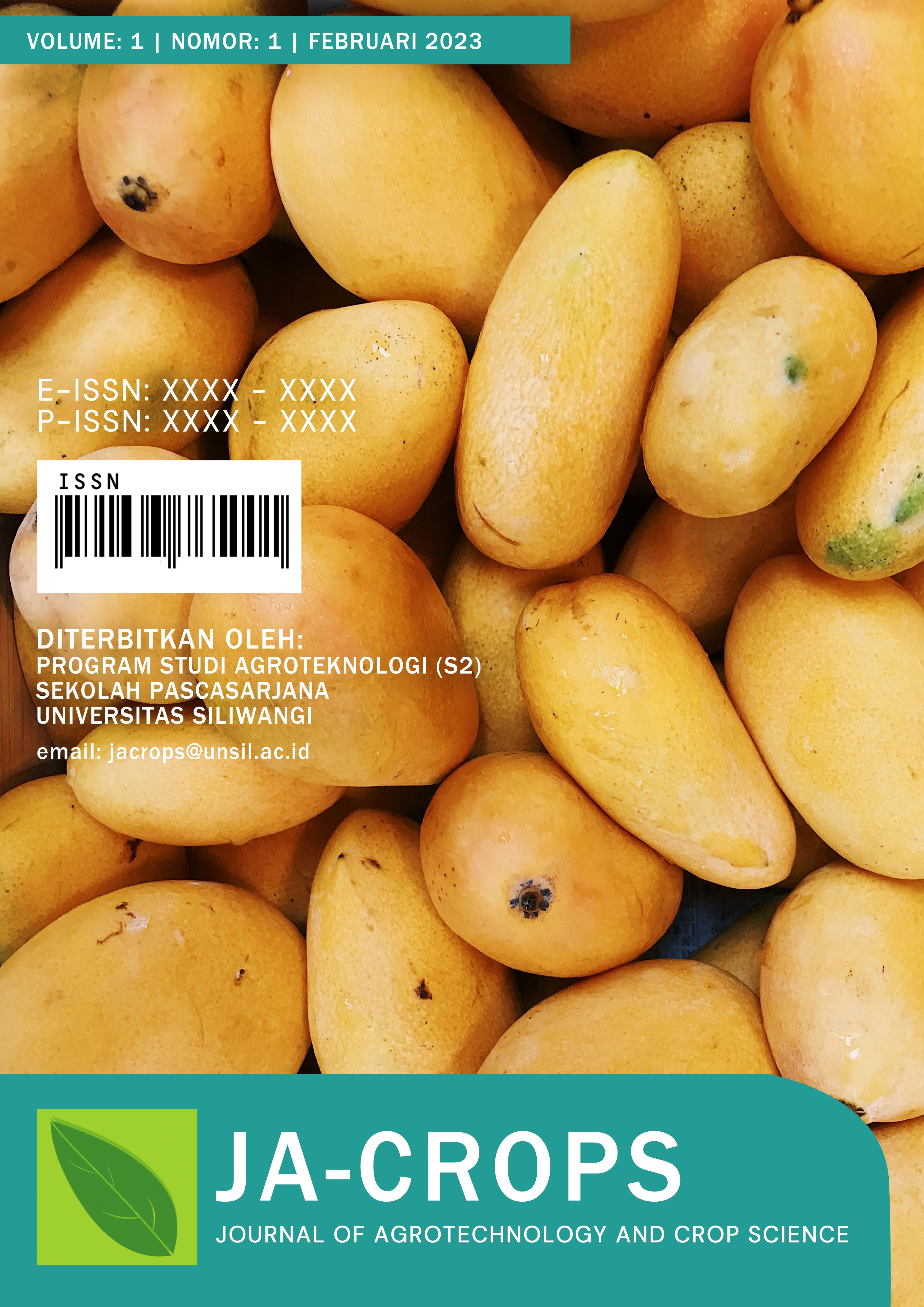 JA-CROPS (JOURNAL OF AGROTECHNOLOGY AND CROP SCIENCE) is a scientific journal published by Agrotechnology Department, Postgraduate Program, Universitas Siliwangi. By publishing twice a year in February and September, JA-CROPS publishes original articles, review articles, case studies, and short cummunications on the subject of agrotechnology and crop science. The scope of the journal are :