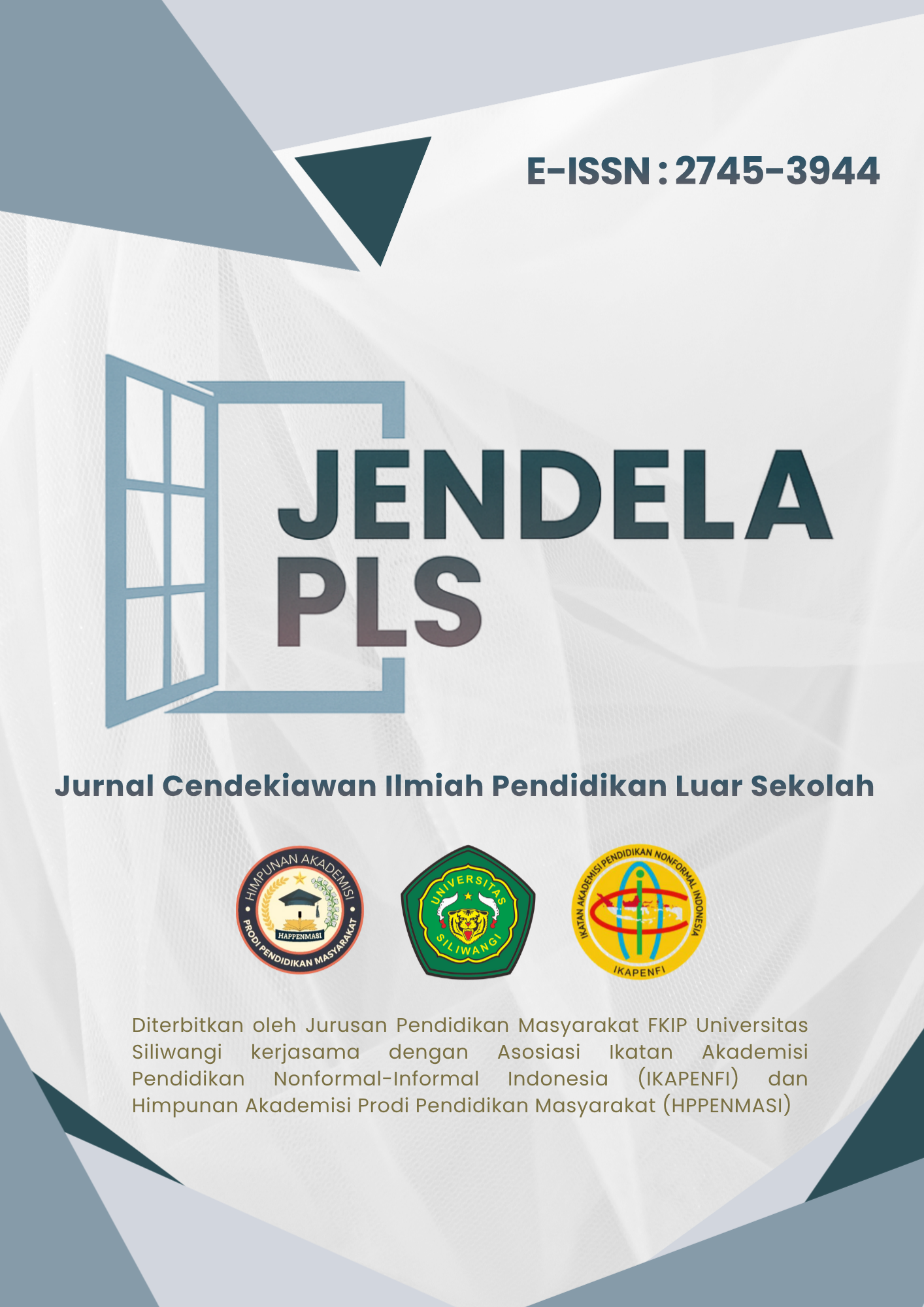 Jendela PLS: Jurnal Cendekiawan Ilmiah Pendidikan Luar Sekolah is a periodical scientific journal that contains research results in the field of Social Development & Community Development, Adult Education, Family Education, Early Childhood Education, Life Skills Education, Community Empowerment, Training and Course Models, Strategies and Methods, Community Education/Nonformal Education Learning Strategies and Methods, and Youth Education. Papers can be in the form of technical papers or surveys of recent developments (state-of-the-art) research. Jendela PLS: Jurnal Cendekiawan Ilmiah Pendidikan Luar Sekolah publishes papers regularly every 6 months, on June and December. Jendela PLS: Jurnal Cendekiawan Ilmiah Pendidikan Luar Sekolah is published by Jurusan Pendidikan Masyarakat FKIP Universitas Siliwangi and has been registered at BRIN with e-ISSN: 2622-4615 for online media.