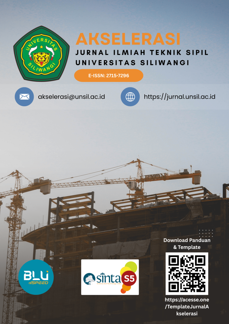 Jurnal Akselerasi mempublikasikan hasil kajian/penelitian yang dilakukan berdasarkan keilmuan di bidang ilmu teknik sipil, meliputi: Bidang struktur, transportasi, manejemen konstruksi, pengelolaan sumber daya air, dan geoteknik.