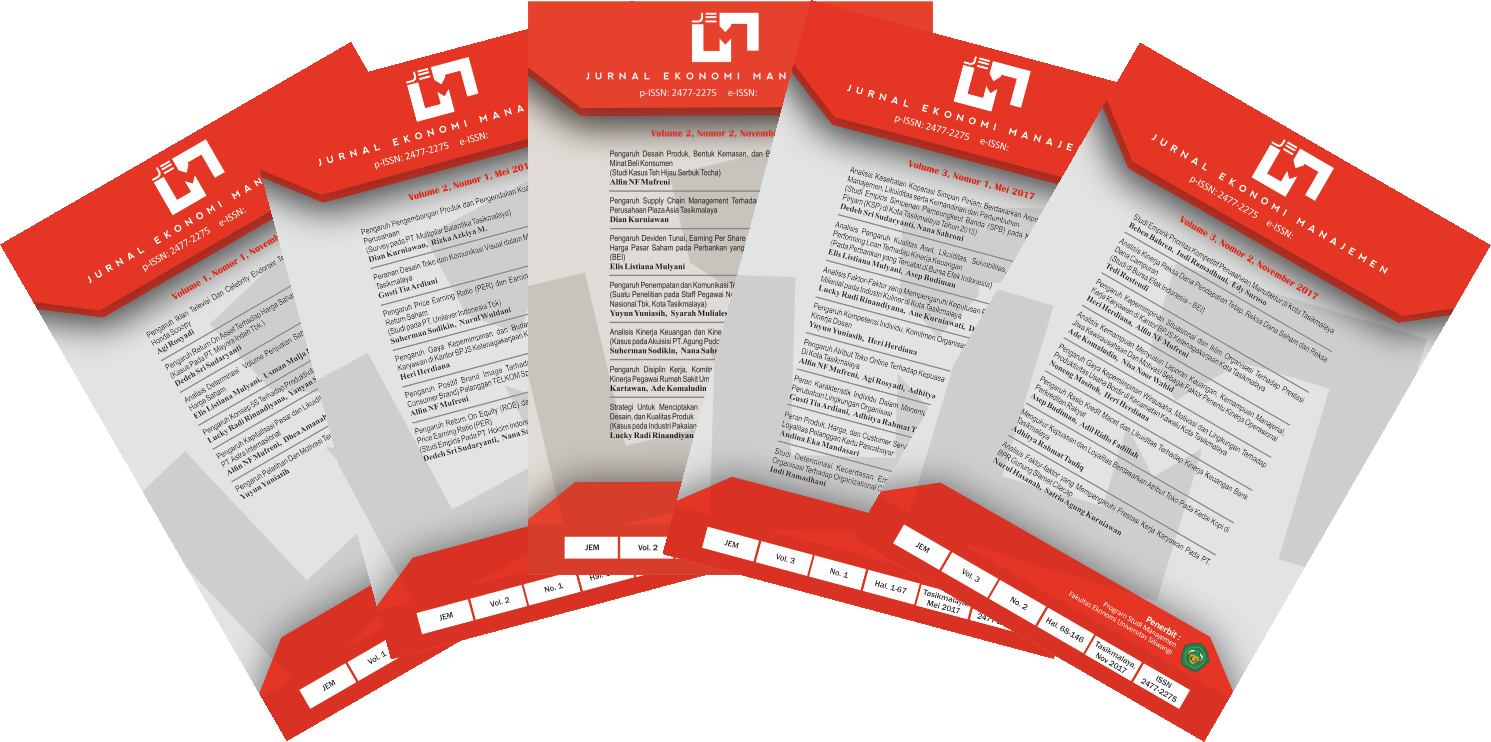 Jurnal Ekonomi Manajemen by Management Study Program Faculty of Economic and Business Universitas Siliwangi is licensed under a Creative Commons Attribution-ShareAlike 4.0 International License.