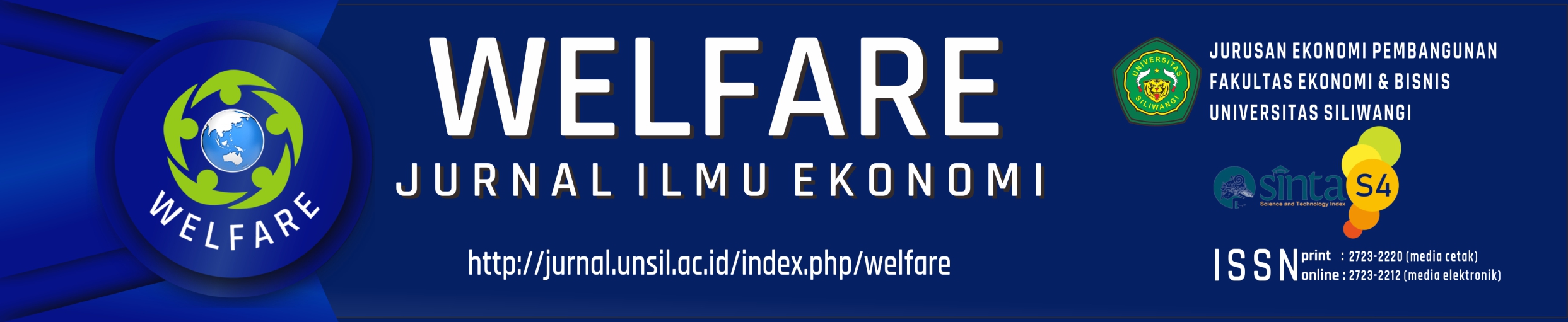 WELFARE Jurnal Ilmu Ekonomi is is a peer-reviewed journal that publishes scientific articles based on original research (as its main priority) and innovative review articles (as a secondary priority) from academics and researchers. The journal only accepts works that have not been published elsewhere. Its areas of study include Planning Economics, Development Economics, Monetary Economics, Cooperatives and MSMEs, Public Economics, Natural Resource and Environmental Economics, Regional Economics, Agricultural Economics, Industrial Economics, Trade Economics, Tourism Economics, Human Resource and Labor Economics, International Economics, Islamic Economics, and Political Economy. WELFARE Jurnal Ilmu Ekonomi has been indexed in: SINTA-4, Google Scholar, Garuda, and all manuscripts have been equipped with Digital Object Identifiers (DOIs).